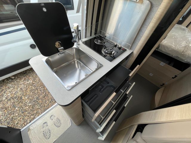 Mit seinem durchdachten Design und den hochwertigen Ausstattungsmerkmalen bietet der V 55 alles, was Sie für Ihre Reisen benötigen. Ein besonderes Highlight ist die praktische Trennung von Dusche und Toilette, die Ihnen maximalen Komfort und Privatsphäre während Ihrer Ausflüge garantiert.