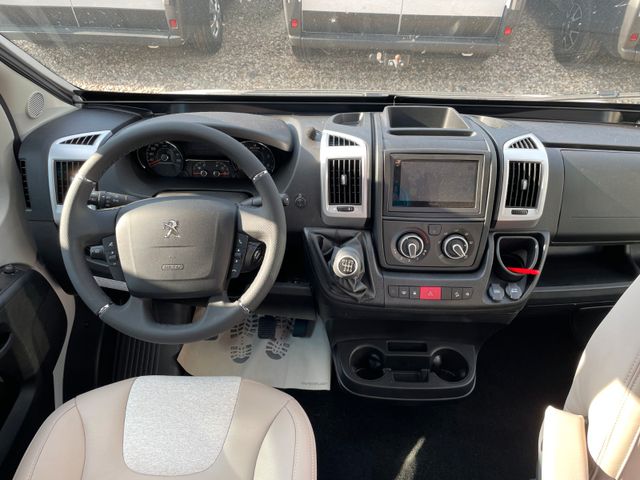 Beheizter Abwassertank, Stoff Polster Alicante, LITHIUM-Aufbaubatterie 100 Ah (mit Schalter, Trennrelais und Booster), Teppichboden im Wohnraum, Außendusche mit Warmwasser, Kaltwasser, Traction+ mit Hill Descent Control, Nebelscheinwerfer vorne, Lenkradfernbedienung für Radio, Luftausströmer mit grauer Aluminiumverkleidung, Rückfahrkamera mit Bildschirm im Armaturenbrett
