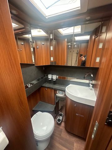 Iveco Daily 3,0 L 204 PS, Euro 6, Automatikgetriebe, 6.700 Kg zulässiges Gesamtgewicht, Klimaautomatik, Tempomat, ALde Compact 3020 HE ( Gas + Elektro), Backofen, großer Kühlschrank (mit sepratem Gefrierfach), Doppel-DIN Radio inkl. Rückfahrkamera, Luftfederung, Markise, 2x 100 Wh Solaranlage, Dachklimaanlage Dometic, Hubbett vorne über Fahrerhaus, Ten Haaft LTE Antenne + TV im Schlafbereich