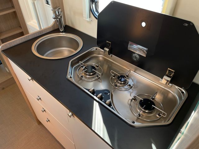 • Gaskocher mit 3 Flammen inkl. Spüle mit Glasabdeckung