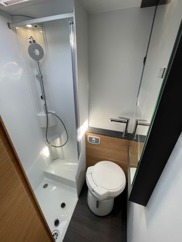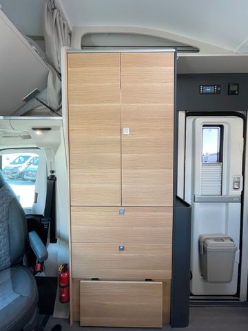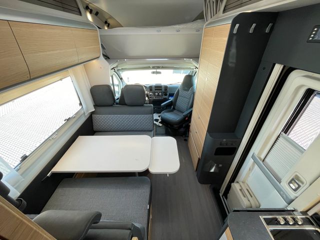 Polster "Arno", Chassis Fiat Ducato mit Tiefrahmen, Airbag Fahrer+Beifahrer, ABS, ASR, ESP, EBD, HBA, LAC, MSR, Hillholder, Traction+, Tagfahrlicht, LED-Rücklicht, Klimaanlage FH, Außenspiegel elek. verstell- und beheizbar, Fensterheber FH elek., Funk-Zentralverriegelung FH, Tempomat, höhenverstellbare Komfort-FH-Sitze mit Armlehnen im Wohnraumdesign, Abgasnorm Euro 6e, ECO-PACK (Stopp-Start + Lichtmaschine intelligent), Getriebe manuell (6+R), Reifen-Reparatur-Set, Frontstoßfänger lackiert in FH-Farbe, Wohnraumfenster mit Rahmen, AGM-Wohnraumbatterie 100Ah, Ladestation 230V / 12V in Garage, Sicherheits-Gasregler MonoControl CS, Dunstabzug, Abdeckung Kocher + Spüle, Abtropfschale, Cassetten-Toilette mit elektrischer Spülung