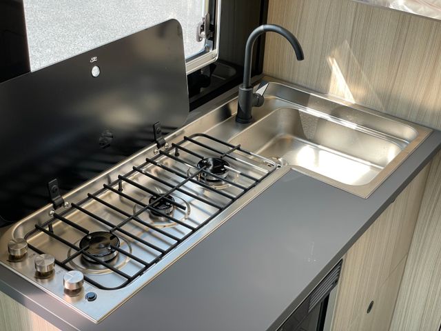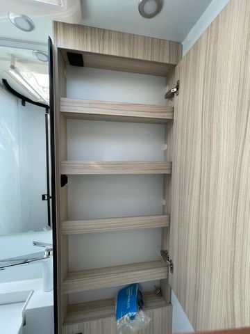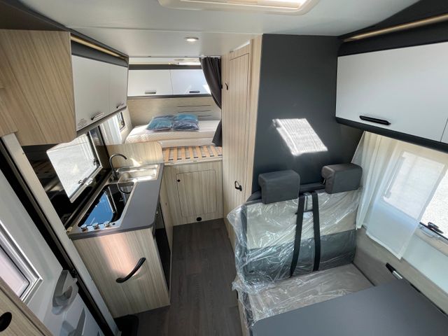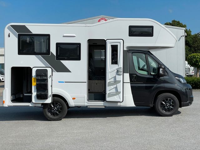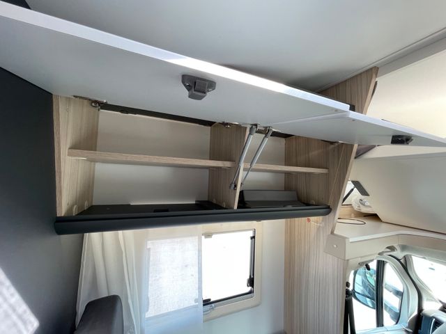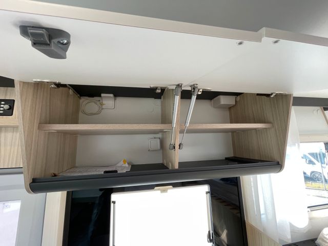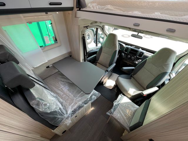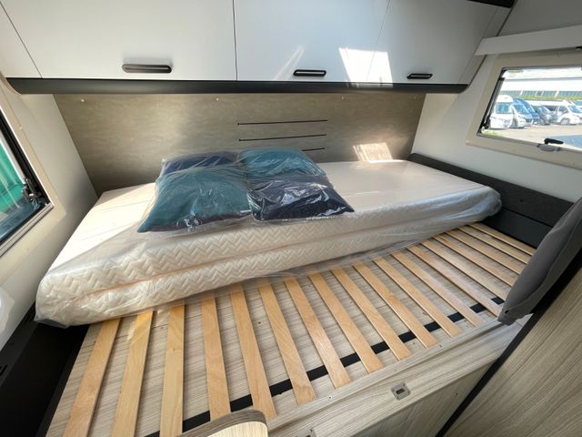 Außenfarbe "Weiß", Polster "Gavin", Airbag Fahrer+Beifahrer, ABS, ASR, ESP, EBD, HBA, LAC, Isofix-Kindersitz-Befestigung Rückbank (1 Stück), Einparkhilfe hinten, Klimaanlage Fahrerhaus, Außenspiegel elektrisch verstellbar und beheizbar, Fensterheber FH elek., Funk-Zentralverriegelung FH, Tempomat, höhenverstellbare Komfort-FH-Sitze mit Armlehnen im Wohnraumdesign, Abgasnorm Euro 6e, Reifen-Reparaturset, AGM-Wohnraumbatterie 100Ah, Ladestation 230V / 12V in Garage, Sicherheits-Gasregler MonoControl CS + Gasfilter, Cassetten-Toilette mit elektrischer Spülung, Falt-Verdunkelung Fahrerhaus, Dachhaube 40x40cm in Wohn- und Schlafraum, Fliegenschutz an Wohnraumtür,, Fensterverblendung Küche, Kaltschaum-Matratze in Festbett (nicht im Alkoven), Dekokissen