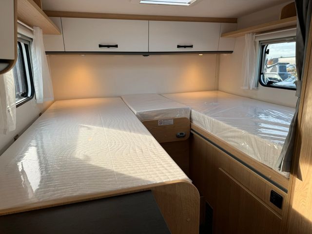 Wohnwelt Adventure , Stoßfänger lackiert , Chassisfarbe Weiß , Fenster in Fronthaube , 2. Außenstauraumklappe , Beklebung Adventure , Schriftzug Adventure , Bettenumbau Einzelbett zu Doppelbett , Altnertiv Dekor , Paket One (Markise, Fahrradträger) , Basic Paket (Panormadachhaube über Küche,Klarglasdachhaube 40 × 40,Duschraumverkleidung,Spiegel mit Garderobenhaken,Zusätzliche Steckdose im Dachschrank über dem Küchenblock,Steckdose in der Garage)