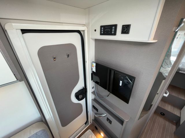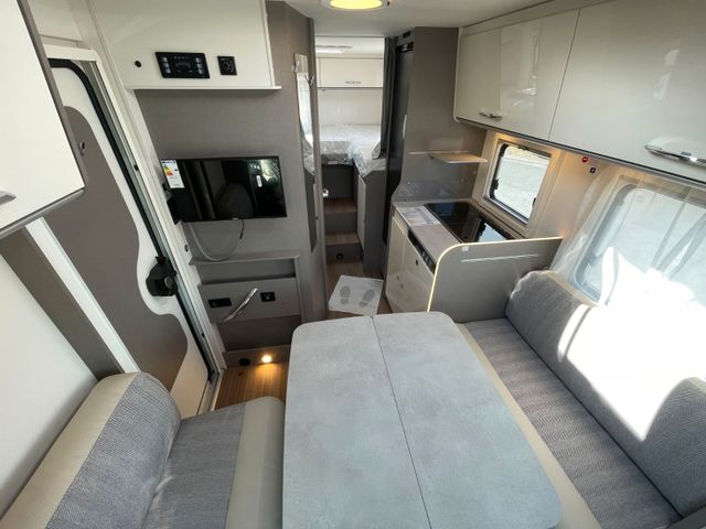 Ford 165 PS Automatikgetriebe, Solaranlage 2x120 Watt, Faltverdunklung Fahrerhaus, Bettenumbau Sitzgruppe, Lithiumbatterie 104 AH, Gasregler mit Umschaltautomatik, Vorbereitung fpr TV Kabel 12V und TV-Halterung, 12V Wlan-Router 4G ohne Sat-Anlage, Complete Selection, Chassis Paket, Komfort Paket, Design Paket type X, Alufelgen, Fenster in T-Haube, Rahmenfenster, Abwassertank isoliert, Markise, Vorbereitung Dachklimaanlage, Vorbereitung Solaranlage, Wohnwelt Emila, 22" TV Smart TV, Multimedia Radio, Rückfahrkamera