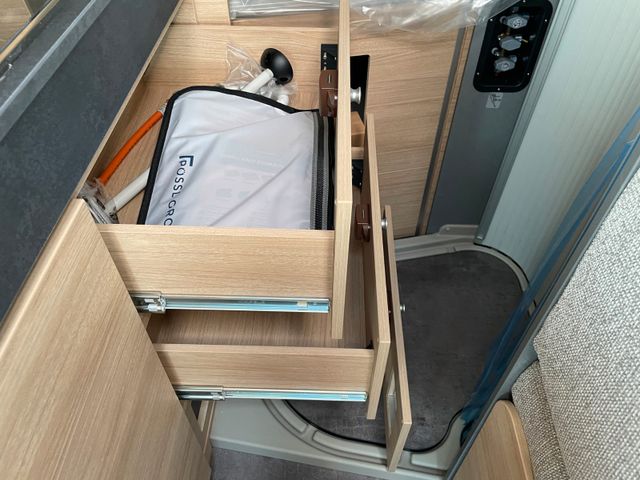 Der neuwertige Pössl D-Line Trenta 540 R auf Citroën Jumper Basis (Baujahr 2024) in eleganter Graphito Grau met. Lackierung überzeugt durch sein komplettes All-in-Paket "mega" und moderne Sicherheitsfeatures. Mit praktischer Bettverbreiterung und komfortabler Ausstattung ist dieses Reisemobil ideal für anspruchsvolle Camper.