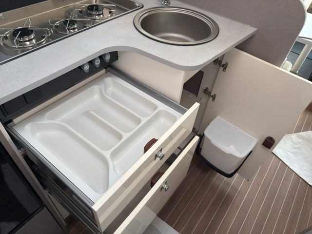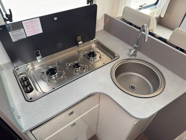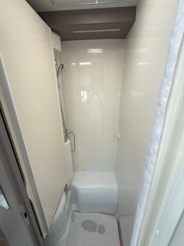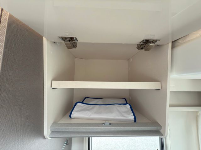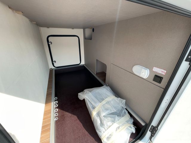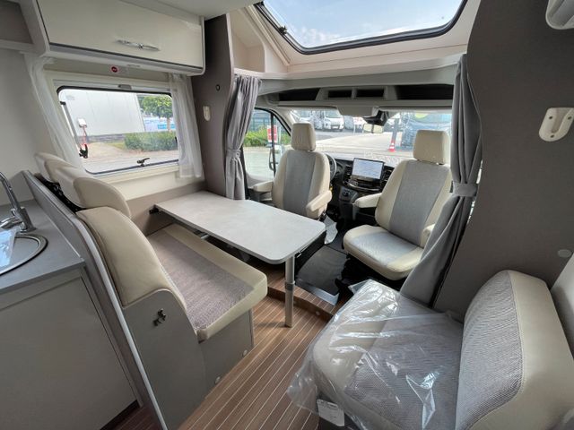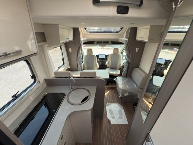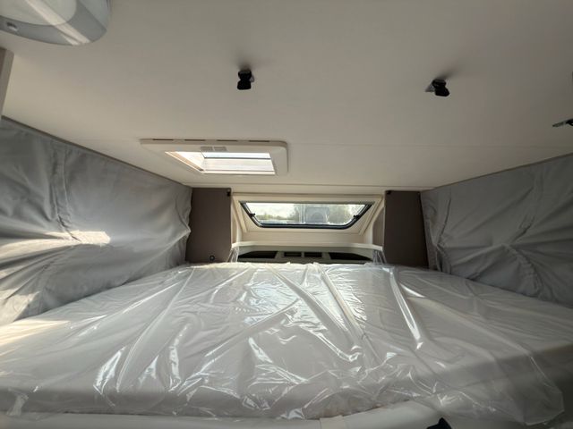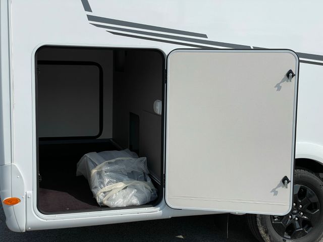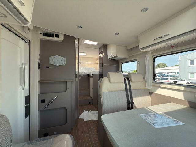 Highlights: großzügiger Wohn-/Essbereich, Queensbett im Heck, voll ausgestattete Küche und modernes Bad mit separater Dusche. Viel Stauraum, inklusive großer Heckgarage. Mit Klimaanlage, durchdachtem Design bietet es Stil und Komfort auf jeder Fahrt.