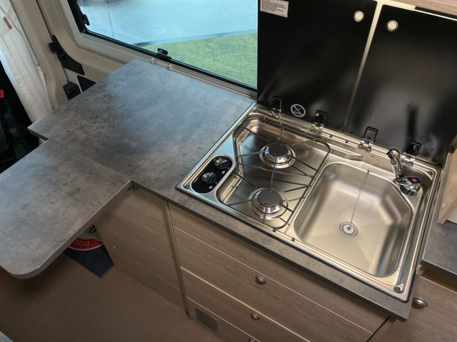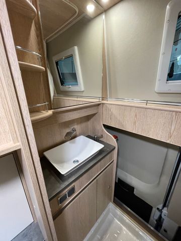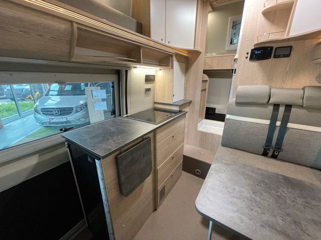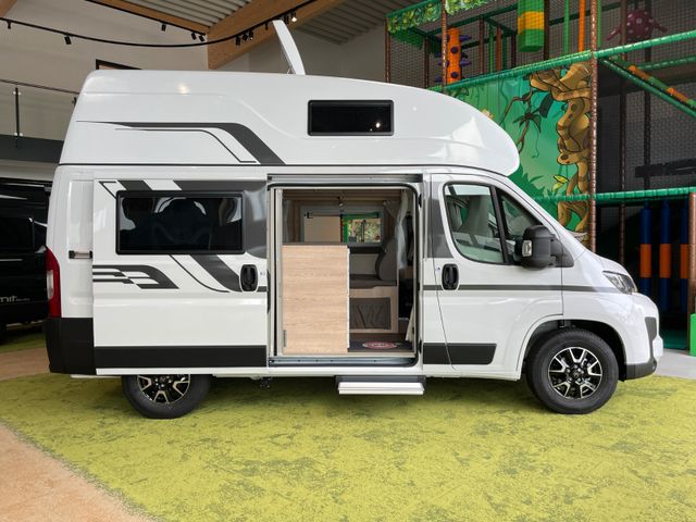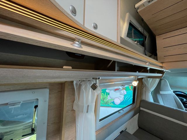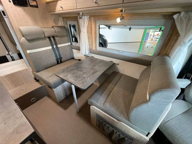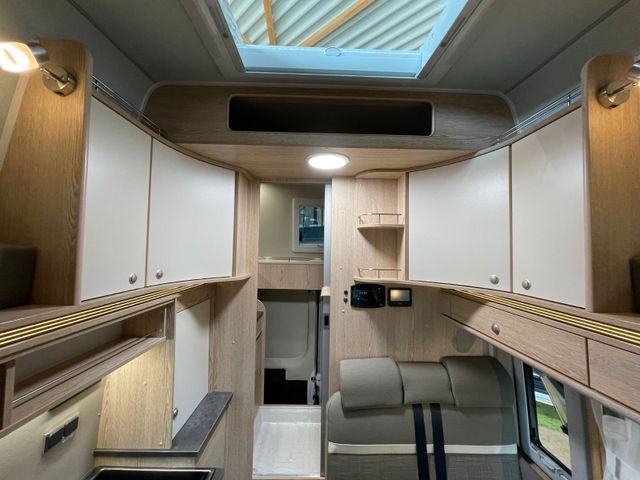 Serienausstattung H-Line, Wohnwelt Mindoro in Holzdekor Eiche/Kupfer, All-In-Paket, Regen- und Lichtsensoren, Reifendrucksensoren, Traction+, Zweiter Funkschlüssel, Schlafplatz Concorde Compact, Bett für Hochdach mit Winxsystem, Bettverbreiterung 4. Schlafplatz quer, Ambiente-Beleuchtung, Zusätzlicher Steckdosensatz 230V/USB, Truma Bedienteil iNet X, Fenster: Dachluke Midi-Heki 45°, Zusatzfenster Dach Heckbereich, Zusatzfenster Sitzgruppe, Remi Seiten- und Frontscheibenverdunkelung, Schließhilfe Softlock seitliche Schiebetür, Trittstufe Omnistep Slideout