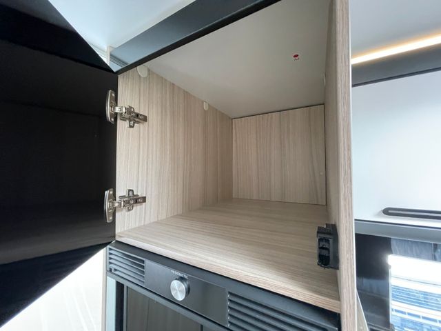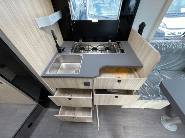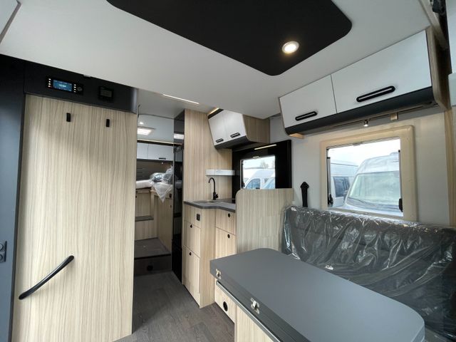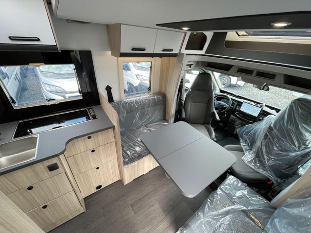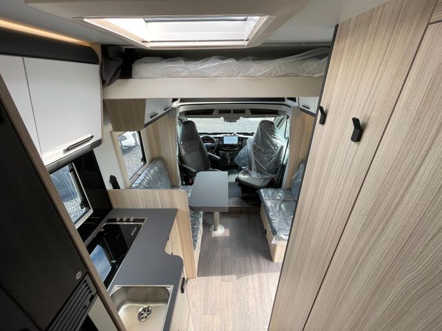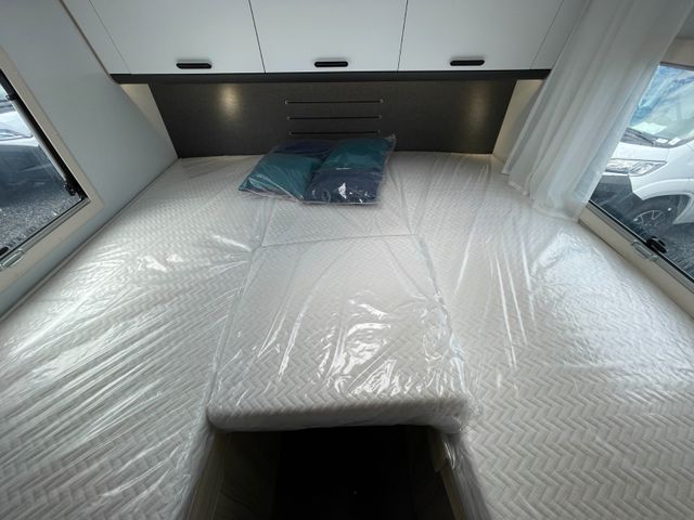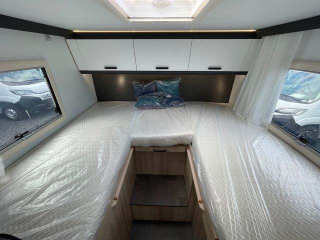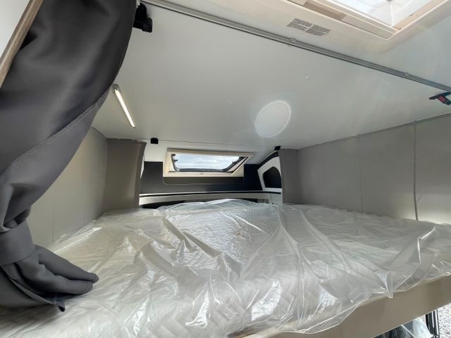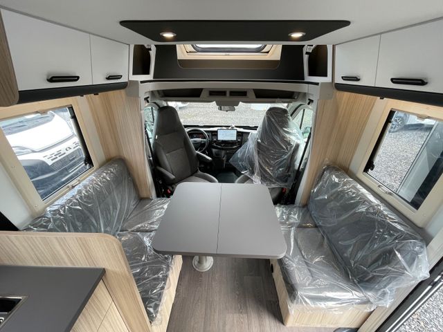 Airbag Fahrer+Beifahrer, ABS, ASR, ESP, EBD, HBA, LAC, Isofix-Kindersitz-Befestigung Rückbank (1 Stück), Notbrems-Assistent,, Fahrspur-Assistent radarbasiert, Licht- und Fernlicht-Assistent, Verkehrszeichen-Erkennung, Nebel-Scheinwerfer, Regen-Assistent, Einparkhilfe hinten, Handbremse elektrisch, Tagfahrlicht, Klimaanlage FH, Außenspiegel elek. verstell- und beheizbar, Fensterheber FH elek., Funk-Zentralverriegelung FH, Tempomat, 12"-Audiosystem + RFK, höhenverstellbare Komfort-FH-Sitze mit Armlehnen im Wohnraumdesign, Abgasnorm Euro 6e, 16"-Räder (bei Automatik-Getriebe), Reifen-Reparaturset, AGM-Wohnraumbatterie 100Ah, Ladestation 230V / 12V in Garage, Sicherheits-Gasregler MonoControl CS + Gasfilter, Cassetten-Toilette mit elektrischer Spülung, Falt-Verdunkelung Fahrerhaus,, Dachhaube 40x40cm in Wohn- und Schlafraum, Fliegenschutz an Wohnraum-/Schiebetür, Fensterverblendung Küche, Kaltschaum-Matratze in Festbett(en) (nicht im Alkoven), Dekokissen