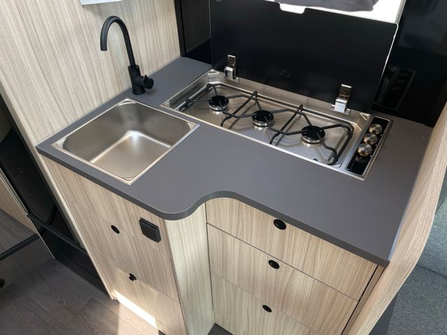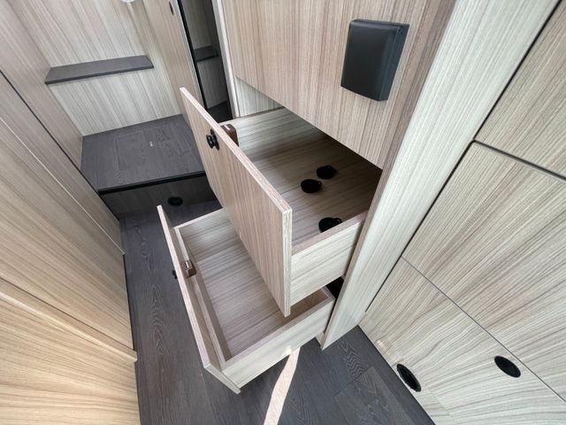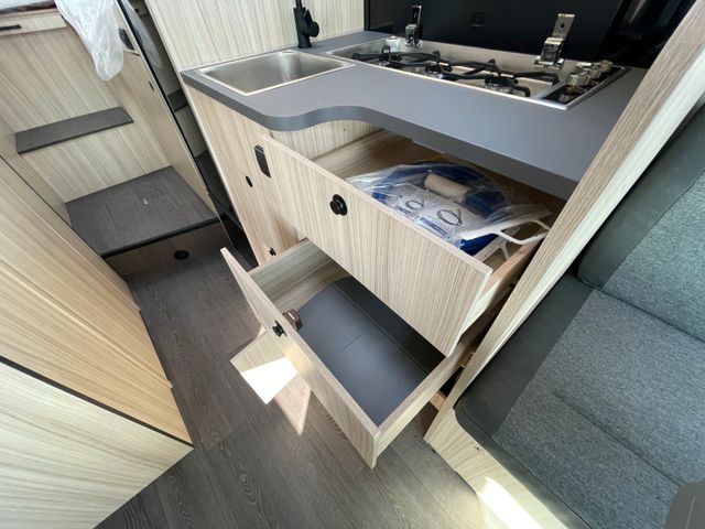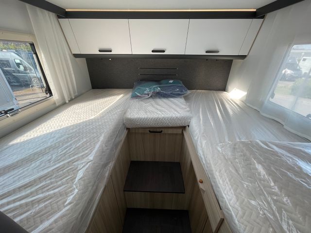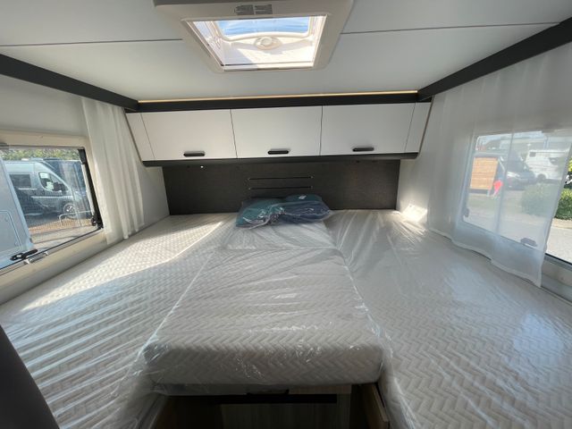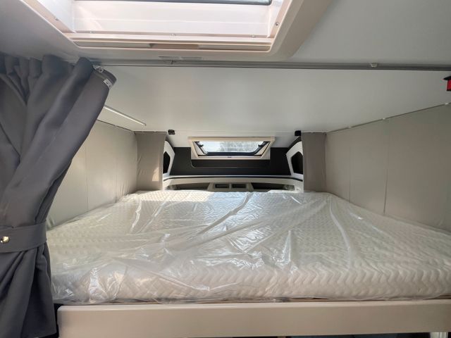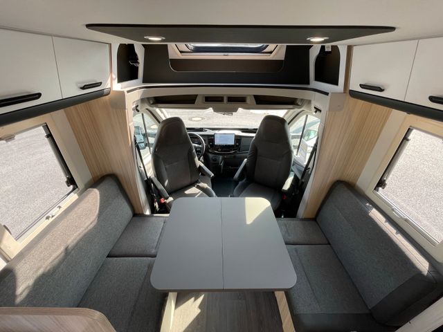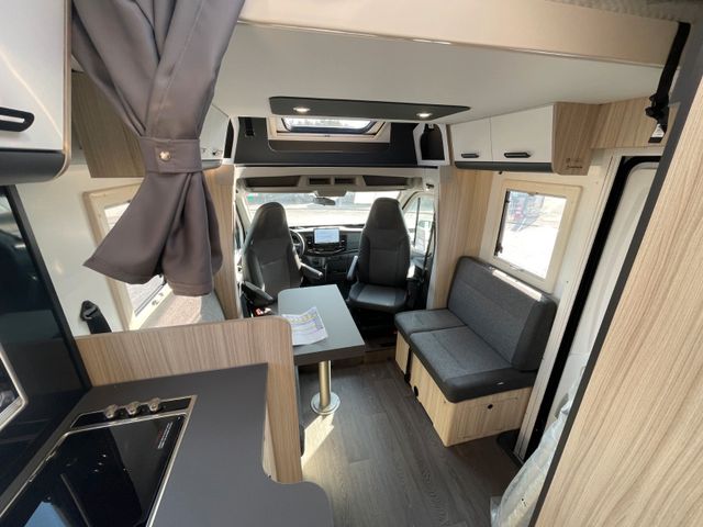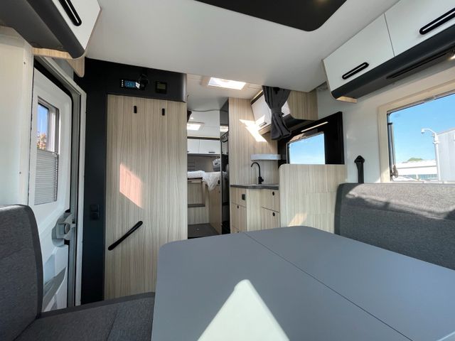 Airbag Fahrer+Beifahrer, ABS, ASR, ESP, EBD, HBA, LAC, Isofix-Kindersitz-Befestigung Rückbank (1 Stück), Notbrems-Assistent,, Fahrspur-Assistent radarbasiert, Licht- und Fernlicht-Assistent, Verkehrszeichen-Erkennung, Nebel-Scheinwerfer, Regen-Assistent, Einparkhilfe hinten, Handbremse elektrisch, Tagfahrlicht, Klimaanlage FH, Außenspiegel elek. verstell- und beheizbar, Fensterheber FH elek., Funk-Zentralverriegelung FH, Tempomat, 12"-Audiosystem + RFK, höhenverstellbare Komfort-FH-Sitze mit Armlehnen im Wohnraumdesign, Abgasnorm Euro 6e, 16"-Räder (bei Automatik-Getriebe), Reifen-Reparaturset, AGM-Wohnraumbatterie 100Ah, Ladestation 230V / 12V in Garage, Sicherheits-Gasregler MonoControl CS + Gasfilter, Cassetten-Toilette mit elektrischer Spülung, Falt-Verdunkelung Fahrerhaus,, Dachhaube 40x40cm in Wohn- und Schlafraum, Fliegenschutz an Wohnraum-/Schiebetür, Fensterverblendung Küche, Kaltschaum-Matratze in Festbett(en) (nicht im Alkoven), Dekokissen