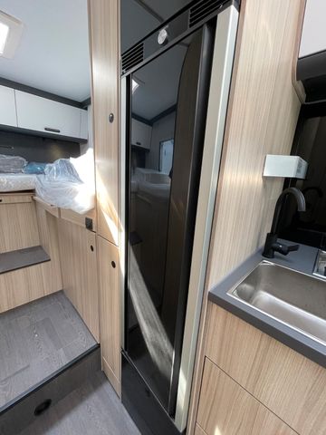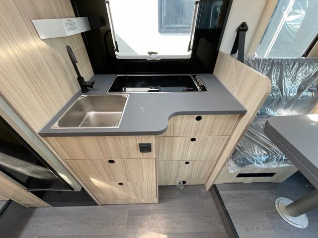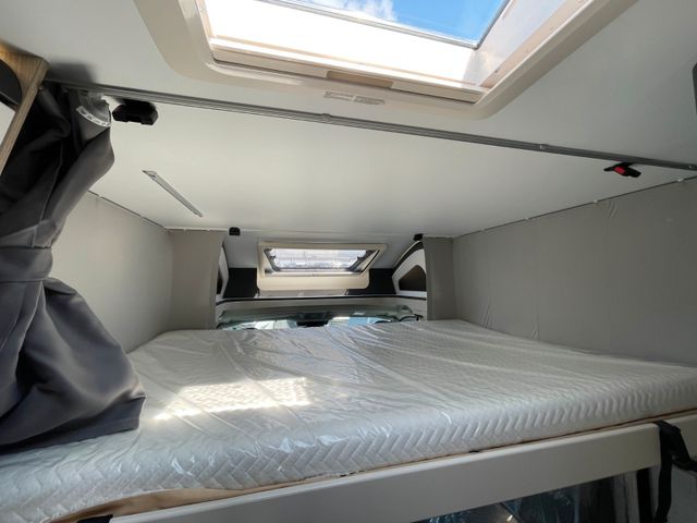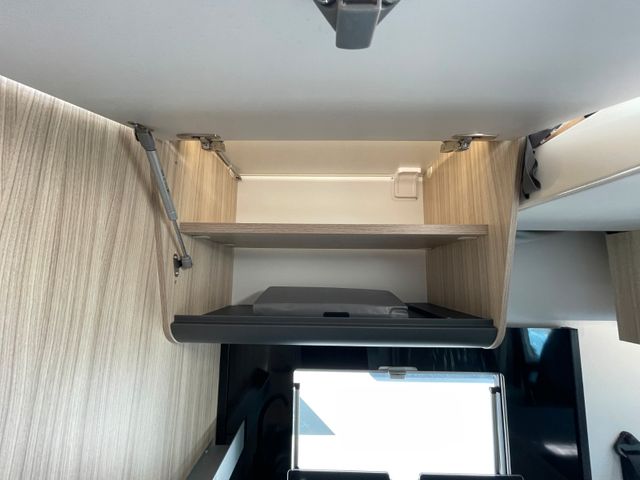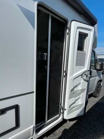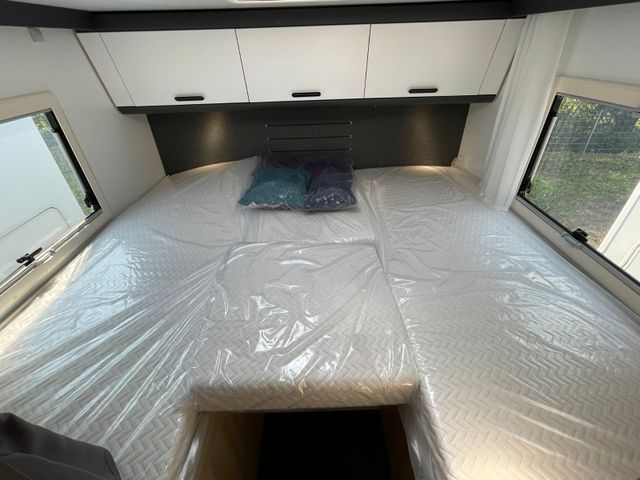 Außenfarbe "Weiß", Polster "Gavin", Airbag Fahrer+Beifahrer, ABS, ASR, ESP, EBD, HBA, LAC, Isofix-Kindersitz-Befestigung Rückbank (1 Stück), Einparkhilfe hinten, Klimaanlage Fahrerhaus, Außenspiegel elektrisch verstellbar und beheizbar, Fensterheber FH elek., Funk-Zentralverriegelung FH, Tempomat, höhenverstellbare Komfort-FH-Sitze mit Armlehnen im Wohnraumdesign, Abgasnorm Euro 6e, Reifen-Reparaturset, AGM-Wohnraumbatterie 100Ah, Ladestation 230V / 12V in Garage, Sicherheits-Gasregler MonoControl CS + Gasfilter, Cassetten-Toilette mit elektrischer Spülung, Falt-Verdunkelung Fahrerhaus, Dachhaube 40x40cm in Wohn- und Schlafraum, Fliegenschutz an Wohnraumtür,, Fensterverblendung Küche, Kaltschaum-Matratze in Festbett (nicht im Alkoven), Dekokissen, Hubbett