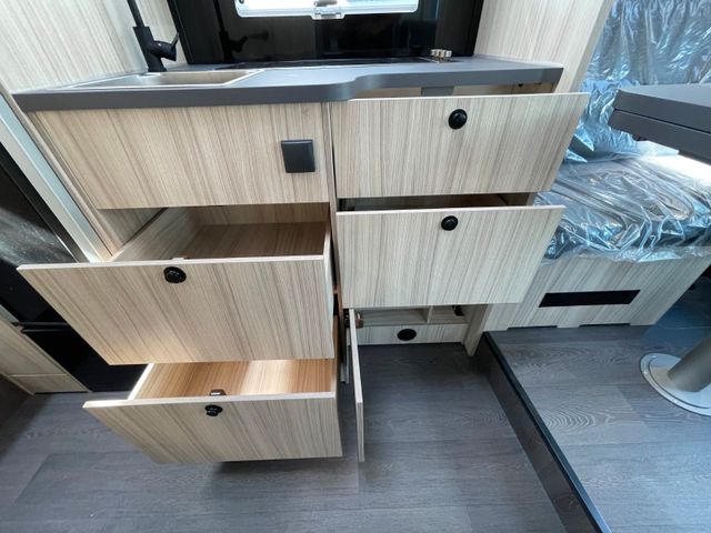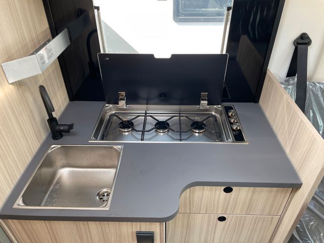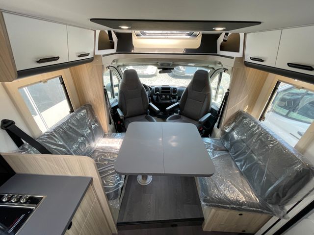 Der SunLiving S72 DL auf Fiat Ducato überzeugt mit einem durchdachten Grundriss, bei dem vor allem die Face-to-Face-Sitzgruppe im Wohnraum hervorsticht. Sie sorgt für ein besonders großzügiges Raumgefühl und ein entspanntes Miteinander – egal ob beim Essen, Spielen oder einfach zum Füße hochlegen. Dazu bietet das Fahrzeug zwei komfortable Einzelbetten im Heck, ein Hubbett über der Sitzgruppe und jede Menge Stauraum – ideal für Paare, Familien oder Freunde, die Wert auf Platz und Flexibilität legen.