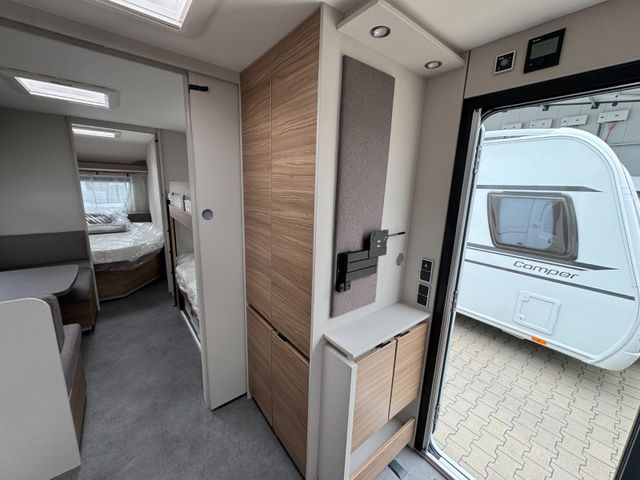Auflastung2.500Kg, Bugfenster bei Toilettenraum vorne, Alternativ Badezimmer, Stauraumklappe rechts hinten 1069x299, Wohnwelt Selma, Deichselabdeckung, 17zoll Alufelgen, Glattblech Weiß, Rahmenfenster, Elektrische Fußbodenerwärmung, Klimaanlage Vorbereitet, TV Halter innen inkl.Anschluss, Multifunktionsdose außen