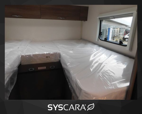 Chassis Design Paket (inkl. 16" Alufelge schwarz light) (Lenkrad und Schaltknauf in Echtleder, Armaturenbrettveredlung mit Techno-Trim Design, FIAT 16" Alufelgen schwarz matt Light Chassis), Fenster in T-Haube, Hubbett manuell mit Clima Plux Elementen, Komfort Paket (2. Außenstauraumklappe (Größe modellabhängig), Fliegengittertür, Garderobenhaken, Steckdose im Küchenblock, Steckdose in der Garage, Holzlattenrost in der Dusche), Lackierter Stoßfänger in Wagenfarbe inkl. Nebelscheinwerfer und Skid Plate schwarz