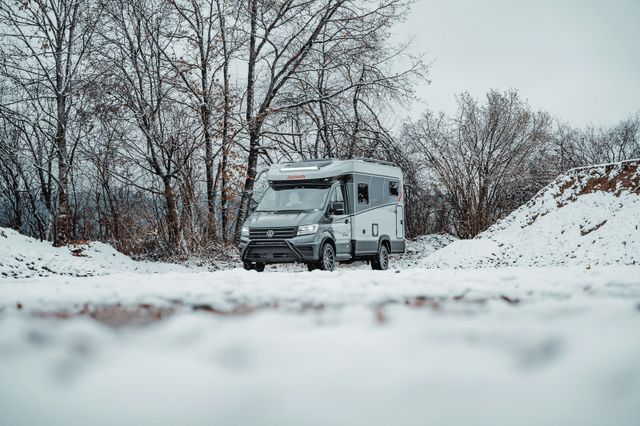 First Edition Paket (Alufelge Hanma 18 Zoll schwarz matt, LoderTire AT 255/55 R18 (M+S Schneeflocke) inkl. Radkastenabdeckung VA, Höherlegung Vorder- und Hinterachse, LED Lightbar T-Haube, Verdunklungsjalousien im Fahrerhaus, Wohnraumtür mit Fenster inkl. Verdunkelung und Zentralverriegelung (inkl. Fahrerhaustür), Dachlüfter mit Ventilator, Doppelverglaste Rahmenfenster mit Verdunklung & Mückenschutz, Cassettenmarkise Omnistor 4.0 m inkl. LED Beleuchtung (manuell), Dachreling, Aufstiegsleiter für Dachreling inkl. Querträger, 2. Aufbaubatterie Dual Battery System (Lithium), 168 Ah, Light Moments: Indirekte Ambientebeleuchtung über den Dachstauschränken, Light Moments: Indirekte Wandflächen-Ambientebeleuchtung, Light Moments: Verkleidete Sitztruhenwange mit indirekter Beleuchtung, Light Moments: Fensterverkleidung im Wohnraum beleuchtet, Light Moments: Küchenrückwand beleuchtet, 5G WLAN Router inkl. 4x4 Dachantenne mit 32 Smart TV inkl. Flachbildschirmhalter, Raumhoher Kompressor Kühlschrank mit separatem Frosterfach (131 l), FirstEdition Außendesign (Bi-Color lackierung T-Haube, schwarze Kantenleisten), Außenlackierung Aufbau: Grau, Außenfarbe Chassis: Indiumgrau Metallic, Klimaanlage AirCare Climatic, LED-Hauptscheinwerfer mit LED-Tagfahrlicht, Licht- und Sicht-Paket, Vorbereitung für VW Connect und VW Connect Plus, Außenspiegel el. verstell- und beheizbar und integriertem Blinker, Assistenzpaket Advanced inkl. automaitscher Distanzregelung (ACC), intelligenter Speed-/ Travel-/ Lane-Assist, Navigationssytem Discover Pro mit 12" Touch-Farbdisplay, Differentialsperre, Berganfahrhilfe / Abfahrhilfe, Handschuhfach abschließbar und beleuchtet), VW Crafter Fahrgestell (3.880 kg), 2.0 l TDI (120 kW / 163 PS) Heavy Duty, 4 Motion Allradantrieb, 8-Gang Wandler-Automatikgetriebe, Winterkomfort-Paket Diesel-Warmluft Globebus Performance (Diesel Warmluftheizung 6 kW mit 1,8 kW Elektroheizstab inkl. digitalem Bedienelement und integriertem Höhenkit, XPS Aufbau-Isolierung, Abwassertank und -leitungen elektrisch beheizt, Abwassertank isoliert, Unterbodenleitungen isoliert, Schalter für Wasserpumpe), Wohnwelt Saros, Frontbügel schwarz matt, Sitzgruppe mit Gurtbank inkl. zwei 3-Punkt-Gurten und einhängbarem Tisch inkl. ausschwenkbarer Erweiterung, Notbett, Duschrost, Isofix Kindersitzbefestigung für 3. und 4. Sitzplatz in Fahrtrichtung
