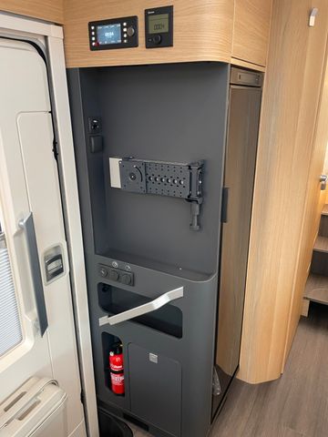 Einparkhilfe hinten, DAB-Radio-Vorbereitung FH, Kurbelstützen hinten, Falt-Verdunkelung FH, Wohnraumtür mit Fliegenschutz+Fenster+ZV, Sonnenschutz-Markise, Federkern-Matratze auf Festbett, Ladebooster, Solar-Anlage, TFT-Halterung, Gasfilter