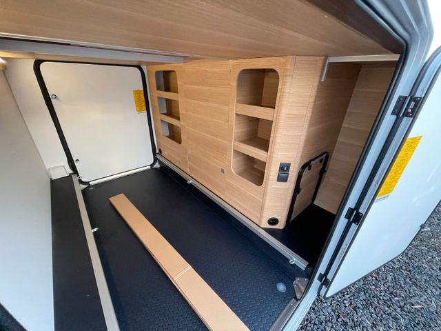 Einparkhilfe hinten, DAB-Radio-Vorbereitung FH, Kurbelstützen hinten, Falt-Verdunkelung FH, Wohnraumtür mit Fliegenschutz+Fenster+ZV, Sonnenschutz-Markise, Federkern-Matratze auf Festbett, Ladebooster, Solar-Anlage, TFT-Halterung, Gasfilter