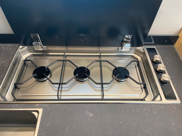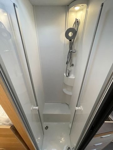 Polster "Arno", Airbag Fahrer+Beifahrer, ABS, ASR, ESP, EBD, HBA, LAC, MSR, Hillholder, Tagfahrlicht, LED-Rücklicht, Klimaanlage FH, Außenspiegel elek. verstell- und beheizbar, Fensterheber FH elek., Funk-Zentralverriegelung FH, Tempomat, dreh- und höhenverstellbare Komfort-FH-Sitze mit Armlehnen im Wohnraumdesign, Frontantrieb, 16"-Räder, Reifen-Reparatur-Set, Frontstoßfänger lackiert in FH-Farbe, Wohnraumfenster mit Rahmen, Funktions-Doppenboden, AGM-Wohnraumbatterie 100Ah, Ladestation 230V/12V in Garage, Sicherheits-Gasregler MonoControl CS, Dunstabzug, Abdeckung Kocher, Abtropfschale, Cassetten-Toilette mit elektrischer Spülung