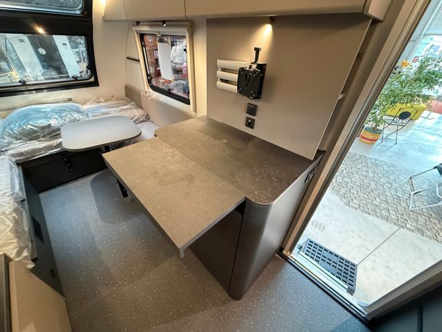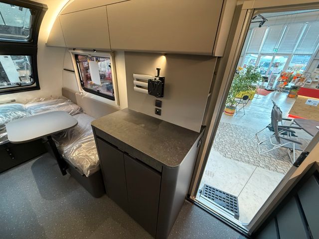 Polster Jade, Schwenk-Tisch, Ausziehtisch, Fußbodentemp., Auflastung 1.300Kg auf 1.500Kg, Leichtmetallfelgen, Heizung Truma Combi 4E, Umrissbeleuchtung