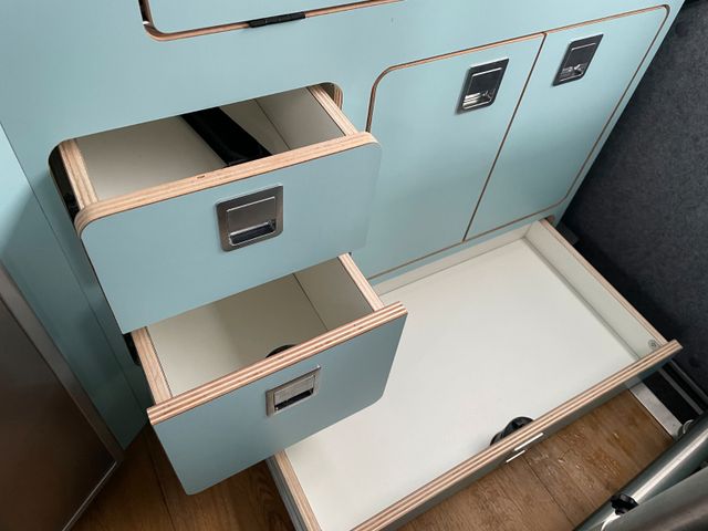 Geschirrschubladen, Geschirrfächer mit Türen