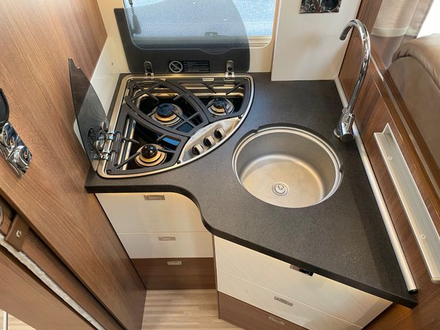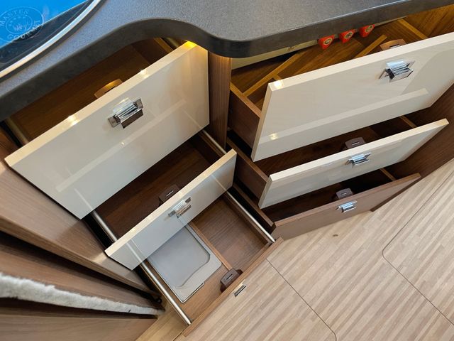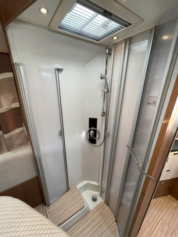 Chassis + Comfort Paket, Alko-High Performance Federbeine vorne, Alufelgen auf Sommerreifen, Markise 4 m, Zusätzliche große Garagentür, MaxxFan im Bereich Küche, Außendusche, Bugschaukasten, Bettumbau im Bereich Sitzgruppe möglich, Queensbett, Aut. Sat + 1 TV 19" + 1 x TV 24", Doppel-DIN-Radio Alpine 9" mit Navigation + DA, RFK (Rückfahrkamera), Solar 300 Watt, Zusätzliche Wohnraumbatterie, Batterriecomputer, Wechselrichter 1000 Watt ohne Netz, Keramikversiegelung Juli 2024 (mit Pflegehinweis), Mono Control, Klimaautomatik