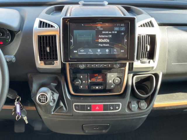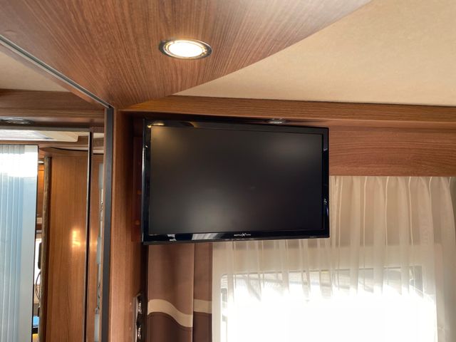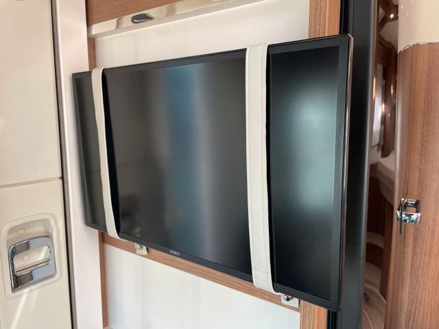 Die Ausstattung umfasst unter anderem RFK, automatische Klimaanlage, Sat-TV (19" + 24") und ein Doppel-DIN Alpine Radio mit Navigation. Das Fahrzeug wurde im Juli 2024 keramikversiegelt.