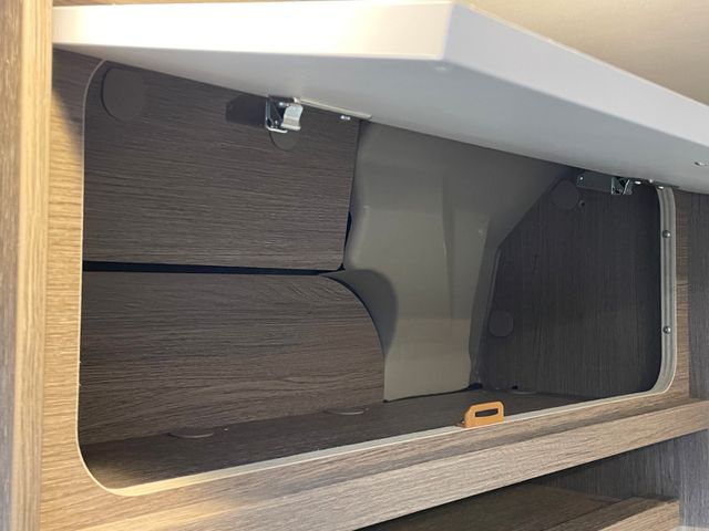 Wohnwelt Elegance Marais mit 7-Zonen-Premium-Kaltschaummatratzen (Längsbetten), Truma Combi 6 E (Gas/Elektro) mit CP Plus-Bedieneinheit, Isolierter Abwassertank, 2x Wohnraumbatterien, Heizteppichmatte, Klimaanlage manuell, Alufelgen 16″, Fenster mit Bullaugen (rechts, statt Ausstellfenster), Fenster im Bad (Toilettenfenster), TFT 22″ schwenkbar